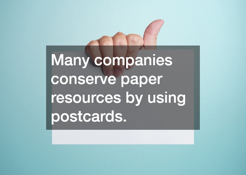 Many companies conserve paper resources by using postcards for advertising campaigns. Postcards can also be made from recycled materials and have proven effective for raising brand awareness. Postcards are small enough to be tacked onto a bulletin board for later reference and will serve as an ongoing reminder of your company’s availability.